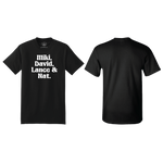 Flying Diamonds Tshirt - Legends Miki, David, Lance and Nat. Black shirt with white text.